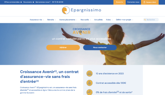 Epargnissimo est un courtier spécialisé dans le conseil et la distribution de produits d’épargne en ligne, créée en 2010 pour rendre les placements financiers accessibles au plus grand nombre. Indépendant des banques et assureurs, le courtier accompagne ses clients avec des solutions d’investissement variées, des frais compétitifs et une gestion 100 % digitale de leurs contrats.